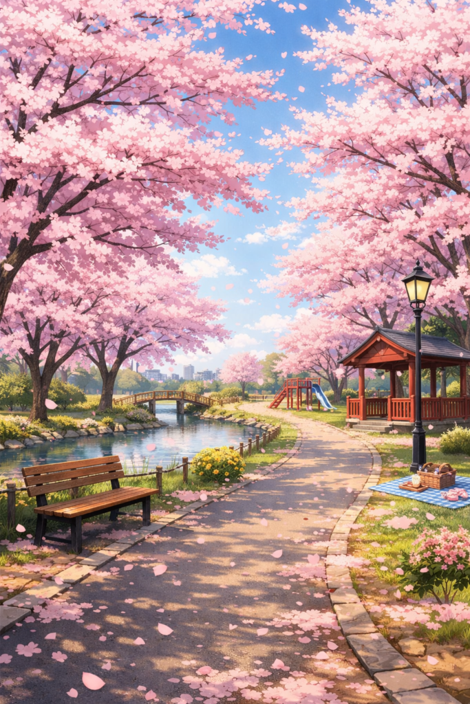 - 桜の公園のイラストを描いて桜の公園のイラストを描いて